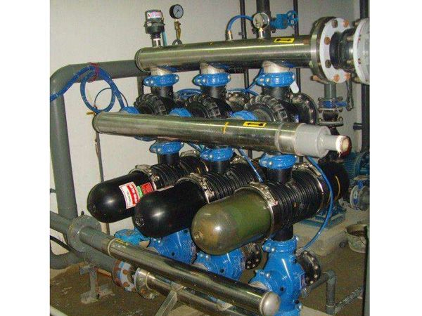反沖洗過濾器,是一種利用濾網直接攔截水中的雜質,去除水體懸浮物、顆粒物,降低濁度,凈化水質,減少系統污垢、菌藻、銹蝕等產生,以凈化水質及保護系統其他設備正常工作的精密設備。水由進水口進入自清洗過濾器機體,由于智能化(PLC、PAC)設計,系統可自動識別雜質沉積程度,給排污閥信號自動排污。