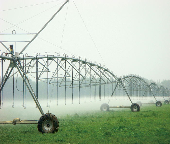 指針式噴灌機適合谷物、豆類、經濟作物和牧草灌溉。電網、柴油發電機組均可作為配套動力。過雨量保護、自動停機系統、故障自動報警系統處于國內領先地位。可在起伏地面工作,并可同時噴灑葉面肥。